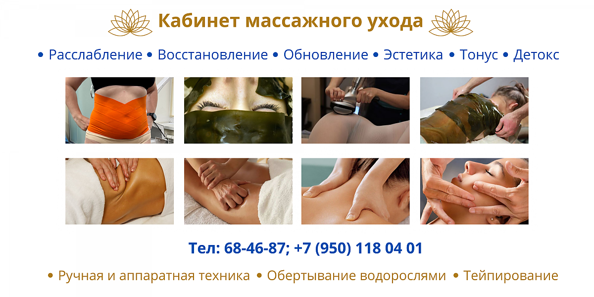 Массаж. Тейпирование. Водорослевое обертывание. Три ритуала, которые возвращают тело и лицо к гармонии.